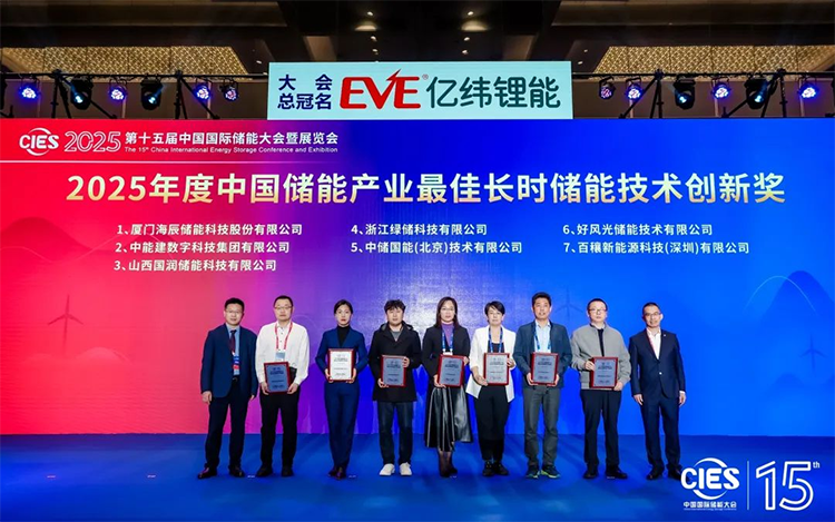 綠儲科技榮獲“2025年度中國儲能產(chǎn)業(yè)最佳長時儲能技術(shù)創(chuàng)新獎”。