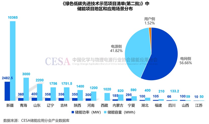 就建設(shè)地點(diǎn)分析,這批儲(chǔ)能示范項(xiàng)目主要集中在新疆、青海、山東、遼寧、吉林等省市自治區(qū),其中新疆規(guī)模最大,達(dá)2.48GW/10.365GWh,容量規(guī)模占總公示規(guī)模的41.54%。青海360MW/3000MWh,山東400MW/2200MWh。遼寧、吉林、陜西、河南、西藏規(guī)模均超1GWh。