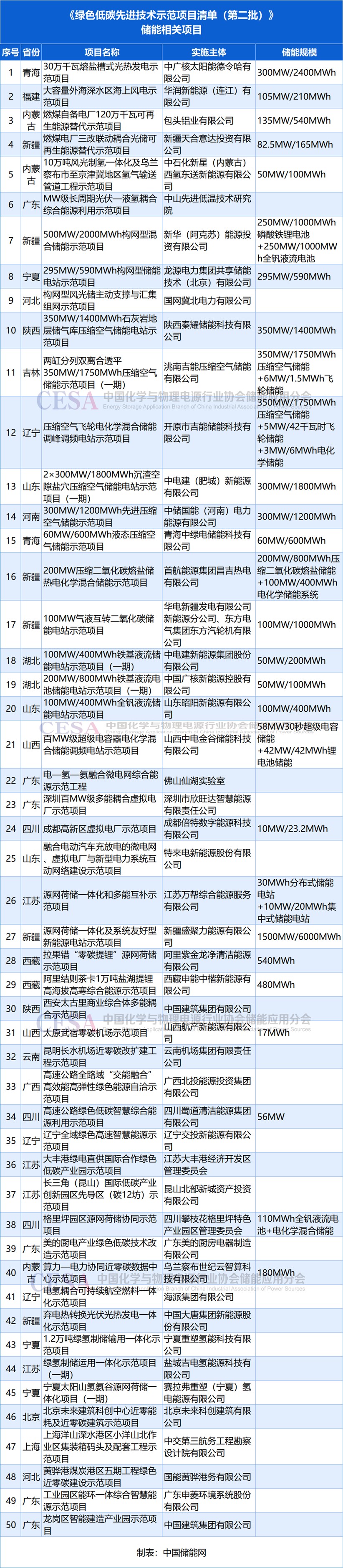 中國儲(chǔ)能網(wǎng)訊:2025年4月2日,國家發(fā)展改革委發(fā)布《綠色低碳先進(jìn)技術(shù)示范項(xiàng)目清單(第二批)》(公開征求意見稿)。在這101個(gè)示范項(xiàng)目中,50個(gè)與儲(chǔ)能直接相關(guān),其中包括構(gòu)網(wǎng)型儲(chǔ)能、微電網(wǎng)、虛擬電廠、源網(wǎng)荷儲(chǔ)一體化、零碳(近零碳)園區(qū)、數(shù)據(jù)中心配儲(chǔ)、光熱儲(chǔ)能、風(fēng)光火儲(chǔ)氫多能互補(bǔ)等多種應(yīng)用場(chǎng)景,涉及磷酸鐵鋰電池儲(chǔ)能、壓縮空氣儲(chǔ)能、二氧化碳儲(chǔ)能液流電池儲(chǔ)能、飛輪儲(chǔ)能、超級(jí)電容器儲(chǔ)能、熔鹽儲(chǔ)熱、氫儲(chǔ)能、混合儲(chǔ)能等多樣化技術(shù)路線,其中28個(gè)項(xiàng)目明確了儲(chǔ)能規(guī)模,共計(jì)5.47GW/24.95GWh。