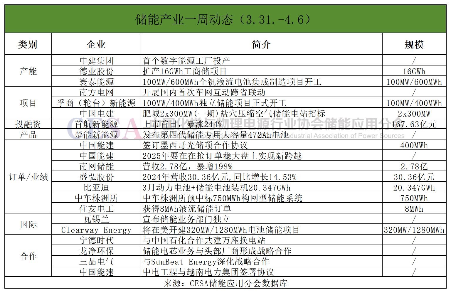 訂單/業(yè)績方面,比亞迪3月動力電池+儲能電池裝機(jī)20.347GWh;南網(wǎng)儲能2024年營收2.78億,暴增198%;中車株洲所預(yù)中標(biāo)750MWh構(gòu)網(wǎng)型儲能系統(tǒng);住友電工獲得8MWh液流儲能訂單;中國能建董事長表示,2025年要在在搶訂單穩(wěn)大盤上實現(xiàn)新跨越。