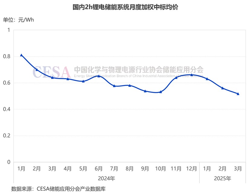 導(dǎo)語:2025年3月國內(nèi)新型儲(chǔ)能采招落地8.4GW/34.4GWh,同比+454%;鋰電儲(chǔ)能系統(tǒng)中標(biāo)加權(quán)均價(jià)0.4707元/Wh,環(huán)比-3.86%;鋰電儲(chǔ)能EPC/PC中標(biāo)加權(quán)均價(jià)0.8551元/Wh,環(huán)比-9.49%。