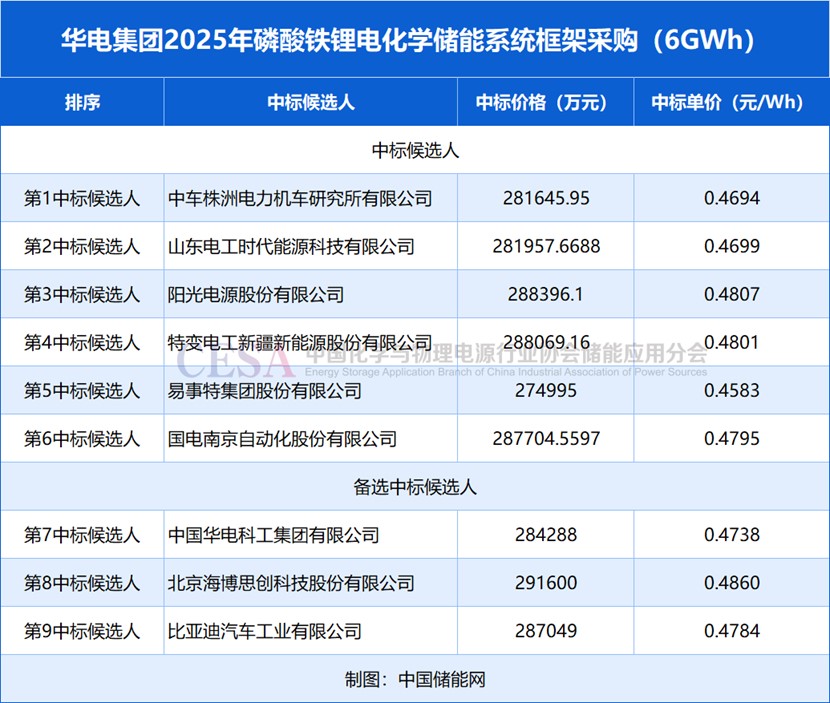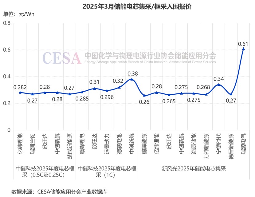 3月鋰電儲(chǔ)能系統(tǒng)集采/框采入圍報(bào)價(jià)區(qū)間為0.4583-0.4807元/Wh,均價(jià)0.4751元/Wh,主要來自于華電集團(tuán)2025年磷酸鐵鋰電化學(xué)儲(chǔ)能系統(tǒng)框采,中車株洲所、電工時(shí)代、陽光電源、特變電工、易事特、國電南自、華電科工、海博思創(chuàng)、比亞迪成功入圍。