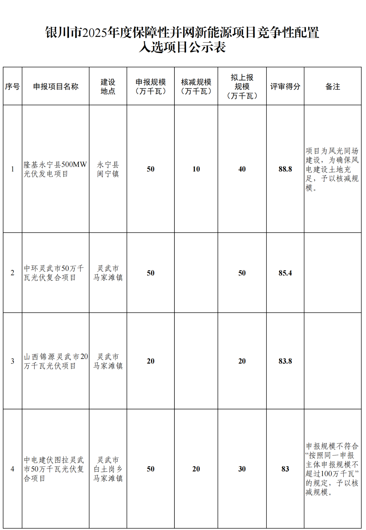 附件:銀川市2025年度保障性并網(wǎng)新能源項目競爭性配置入選項目公示表