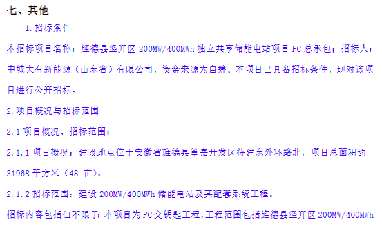 項(xiàng)目不接受聯(lián)合體投標(biāo),計(jì)劃于2025年11月30號(hào)前實(shí)現(xiàn)全容量并網(wǎng)發(fā)電。