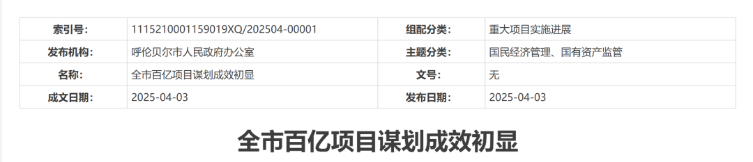 中國儲能網(wǎng)訊:4月3日,呼倫貝爾人民政府披露全市百億項目謀劃行動具體情況。截至4月1日,全市謀劃推進百億元以上重點項目33個,總投資6042億元。項目類別涵蓋傳統(tǒng)能源、新能源、電網(wǎng)工程等。