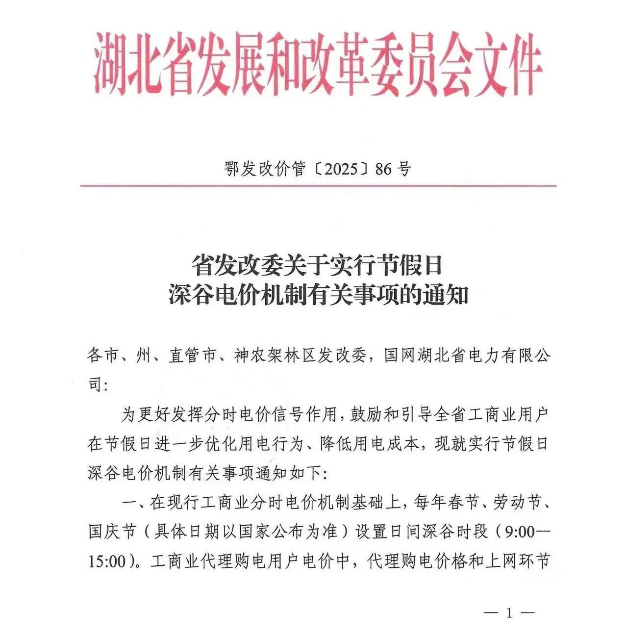 中國儲(chǔ)能網(wǎng)訊:4月8日,湖北發(fā)改委發(fā)布《關(guān)于實(shí)行節(jié)假日深谷電價(jià)機(jī)制有關(guān)事項(xiàng)的通知》。