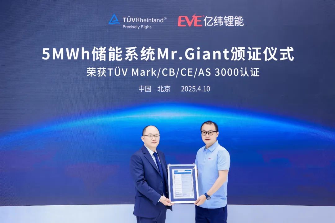現(xiàn)場,億緯鋰能旗艦產(chǎn)品Mr.Giant也迎來重要里程碑,順利獲得TüV Mark/CB/CE/AS 3000等國際認證證書,具備進入歐洲及澳洲市場的資質(zhì)。