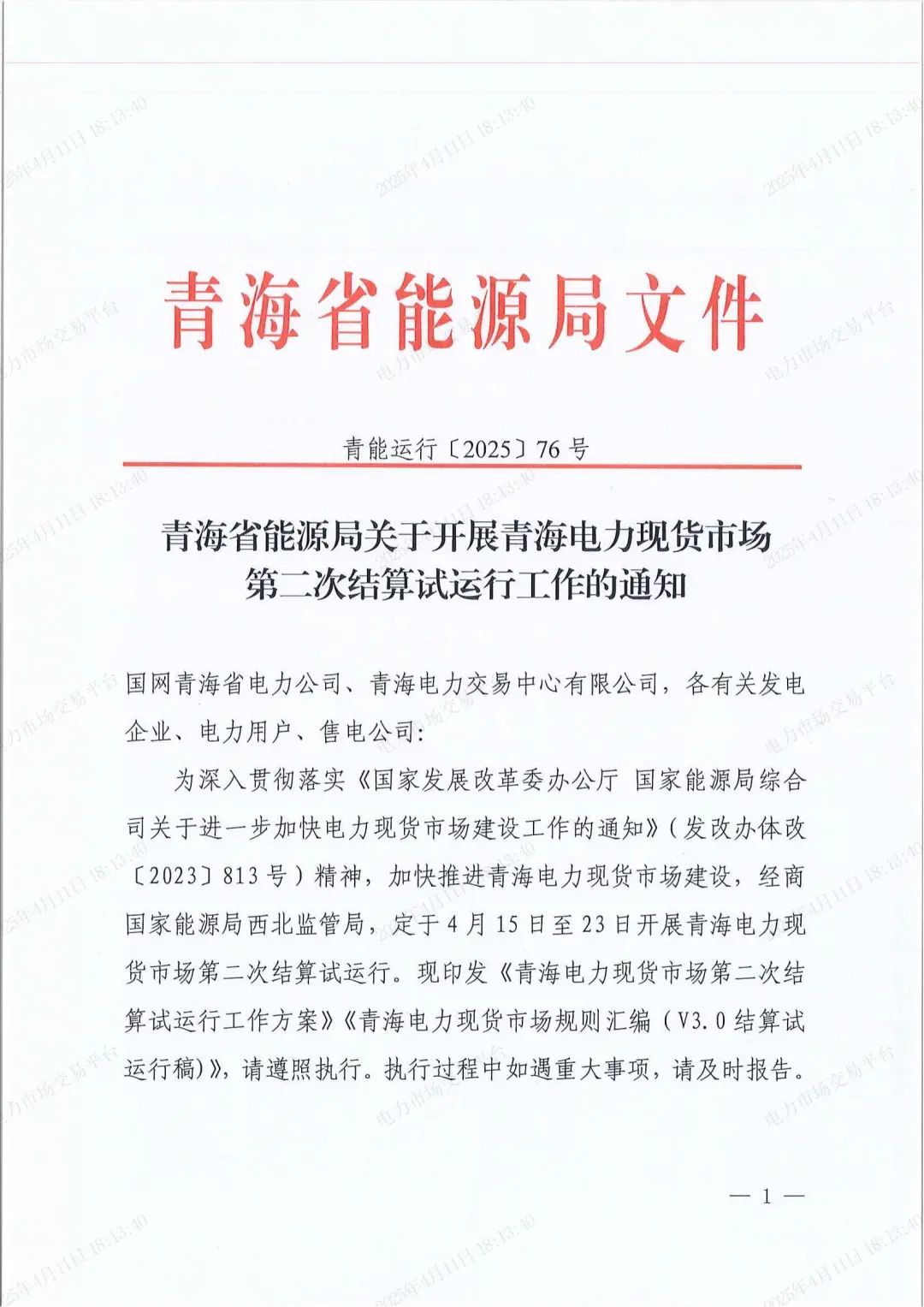 中國儲能網(wǎng)訊:近日,青海電力交易中心發(fā)布青海省能源局關(guān)于開展青海電力現(xiàn)貨市場第二次結(jié)算試運行工作的通知。隨通知下發(fā)《青海省電力現(xiàn)貨市場第二次結(jié)算試運行工作方案》(以下簡稱“方案”)和《青海省電力現(xiàn)貨市場規(guī)則匯編(V3.0結(jié)算試運行稿)》(以下簡稱“規(guī)則”)。