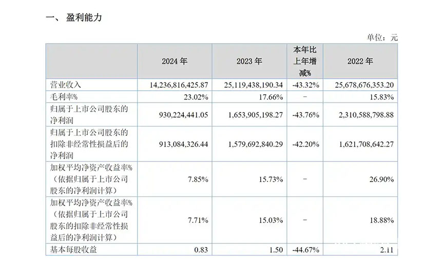 中國儲能網(wǎng)訊:4月15日晚,“北交所一哥”貝特瑞(835185.BJ)發(fā)布了2024年年報。報告期內(nèi),貝特瑞實現(xiàn)營業(yè)收入142.37億元,實現(xiàn)歸母凈利潤9.3億元;總資產(chǎn)333.47億元,同比增長13.49%;凈資產(chǎn)122.27億元,同比增長5.67%。2024年,公司保持穩(wěn)健的發(fā)展態(tài)勢,展現(xiàn)強大的經(jīng)營韌性和市場競爭力。