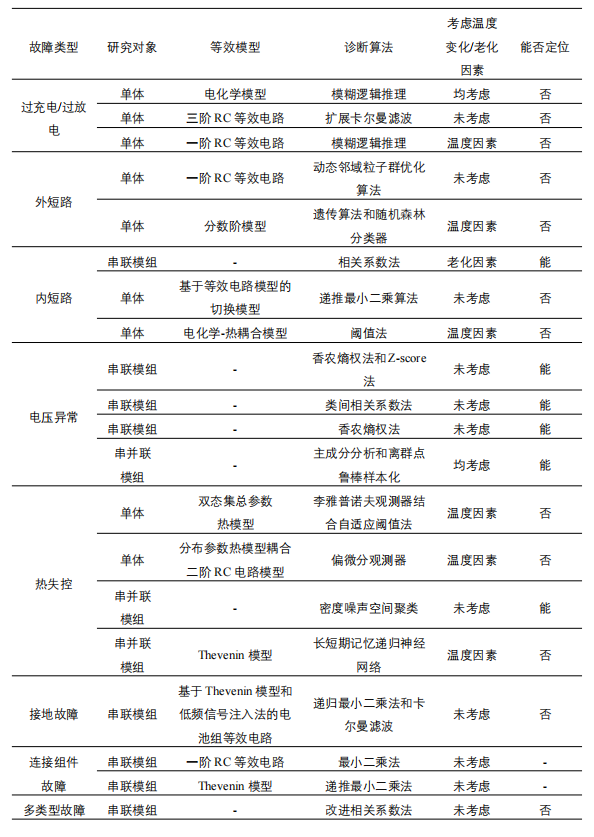 目前,漸變性故障診斷已有大量研究,如SOC和SOH評估、剩余壽命預(yù)測等。但是針對過充電、短路等突發(fā)性故障的研究較少,且辨識難度加大,但允許預(yù)警時(shí)間短,是亟需解決的關(guān)鍵問題。