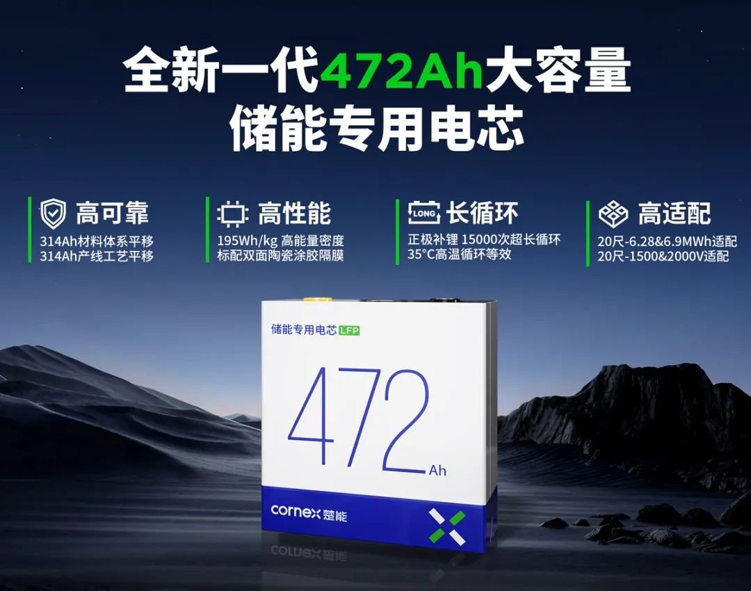 楚能新能源以“技術(shù)復(fù)用+產(chǎn)能共享”策略發(fā)布第四代儲能專用大容量472Ah電池,20尺集裝箱儲能系統(tǒng)電量最高可達(dá)7.06MWh。