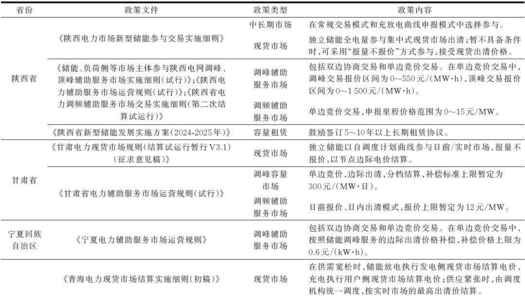 表1 西北五省新型儲(chǔ)能相關(guān)重要政策