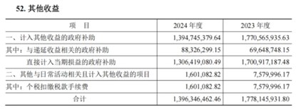 公司歸母凈利潤同比微增0.6%至40.76億元,低于市場預(yù)期;而扣非凈利潤同比增長14.76%至31.62億元,二者差異可能主要源于非經(jīng)常性損益的減少。報(bào)告期內(nèi),公司計(jì)入當(dāng)期損益的政府補(bǔ)助為13.06億元,同比減少3.95億元,拉低了整體歸母凈利潤的增速。