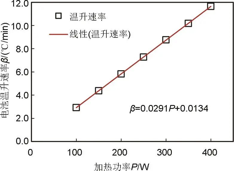 圖4 加熱功率與電池溫升速率的關(guān)系