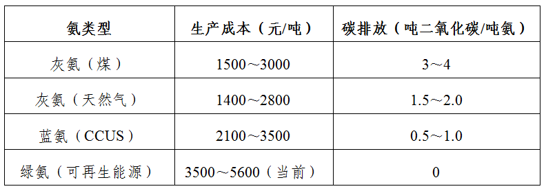 表2 不同氨產(chǎn)品的成本與碳排放比較