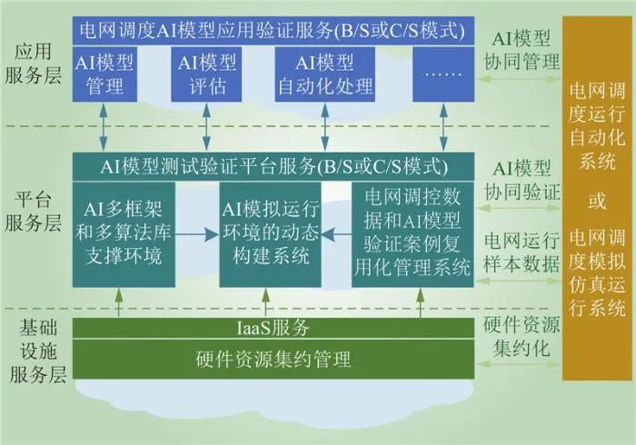 系統(tǒng)不同層級(jí)可外接各類電網(wǎng)調(diào)度仿真模擬系統(tǒng)或?qū)嶋H運(yùn)行的自動(dòng)化系統(tǒng),實(shí)現(xiàn)硬件資源集約化、電網(wǎng)模型和數(shù)據(jù)共享、AI模型訓(xùn)練和驗(yàn)證全流程支持等功能。