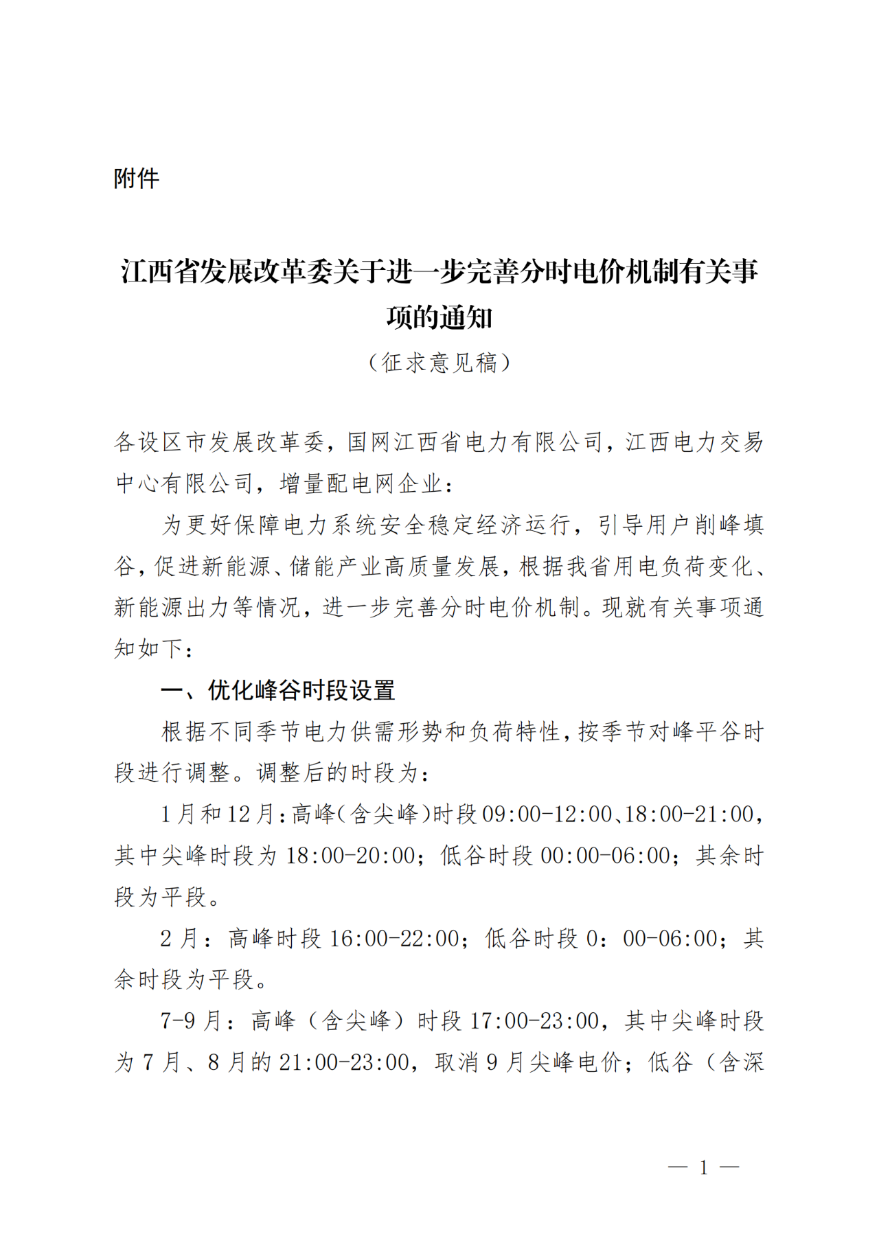 附件:江西省發(fā)展改革委關(guān)于進(jìn)一步完善分時(shí)電價(jià)機(jī)制有關(guān)事項(xiàng)的通知(征求意見(jiàn)稿)