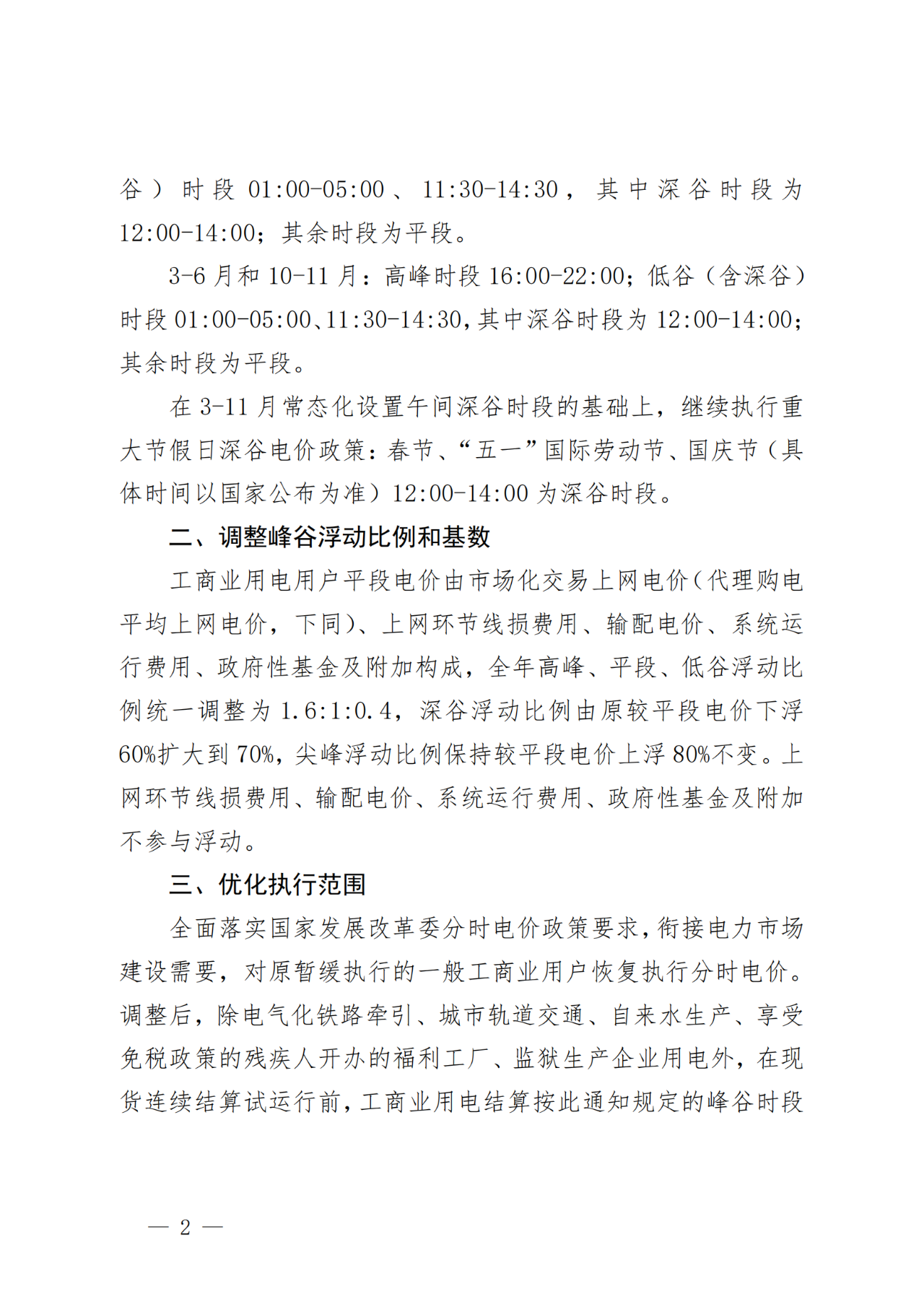 全年高峰、平段、低谷浮動(dòng)比例統(tǒng)一調(diào)整為1.6:1:0.4,而深谷浮動(dòng)比例由原較平段電價(jià)下浮60%擴(kuò)大到70%。