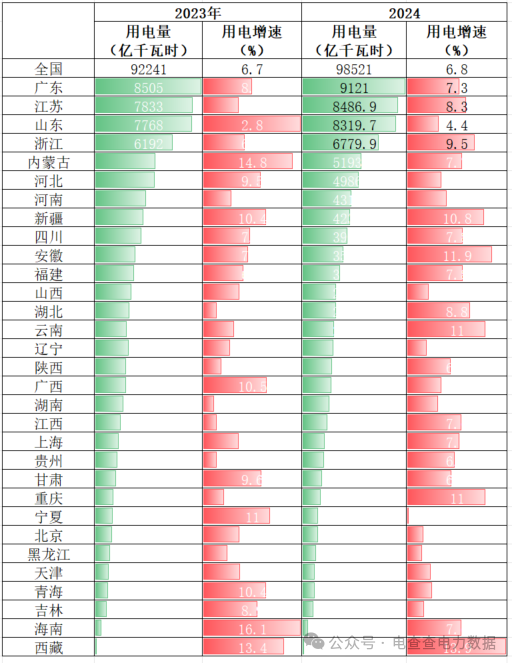在31個(gè)省份中,各省份的用電量情況呈現(xiàn)出明顯的差異與特點(diǎn)。經(jīng)濟(jì)大省廣東、江蘇、山東和浙江不僅GDP總量位居前列,用電量也同樣名列前茅。以廣東為例,其2024年12月當(dāng)月用電量高達(dá)719億千瓦時(shí),全年累計(jì)用電量更是達(dá)到9121億千瓦時(shí),同比增長(zhǎng)7.3%,顯示出強(qiáng)大的經(jīng)濟(jì)活力與能源需求。部分省份的用電量增速尤為亮眼。如安徽,12月當(dāng)月用電量319.9億千瓦時(shí),同比增長(zhǎng)4.2%,全年累計(jì)用電量3597.9億千瓦時(shí),同比增長(zhǎng)高達(dá)11.9%,反映出該省經(jīng)濟(jì)的快速發(fā)展與產(chǎn)業(yè)結(jié)構(gòu)的持續(xù)優(yōu)化。同樣,重慶12月當(dāng)月用電量136.6億千瓦時(shí),同比增長(zhǎng)6.4%,全年累計(jì)用電量1612.6億千瓦時(shí),同比增長(zhǎng)11.0%,展現(xiàn)出強(qiáng)勁的發(fā)展勢(shì)頭。也有一些省份的用電量增長(zhǎng)相對(duì)較為平穩(wěn)。北京12月當(dāng)月用電量140.4億千瓦時(shí),同比下降6.1%,但全年累計(jì)用電量1389.4億千瓦時(shí),同比增長(zhǎng)2.3%,這或許與城市的產(chǎn)業(yè)結(jié)構(gòu)調(diào)整與能源效率提升有關(guān)。上海12月當(dāng)月用電量173.2億千瓦時(shí),同比增長(zhǎng)2.7%,全年累計(jì)用電量1984.2億千瓦時(shí),同比增長(zhǎng)7.3%,作為國(guó)際化大都市,其用電量的增長(zhǎng)與金融、服務(wù)業(yè)等產(chǎn)業(yè)的穩(wěn)定發(fā)展相契合。值得注意的是,西藏、云南等省份的用電量增速也較為突出。西藏12月當(dāng)月用電量16.2億千瓦時(shí),同比增長(zhǎng)10.3%,全年累計(jì)用電量154.2億千瓦時(shí),同比增長(zhǎng)13.9%;云南12月當(dāng)月用電量247.3億千瓦時(shí),同比增長(zhǎng)11.4%,全年累計(jì)用電量2788.3億千瓦時(shí),同比增長(zhǎng)11.0%。這些地區(qū)用電量的快速增長(zhǎng),不僅體現(xiàn)了當(dāng)?shù)亟?jīng)濟(jì)的加速發(fā)展,也與基礎(chǔ)設(shè)施建設(shè)的推進(jìn)、產(chǎn)業(yè)轉(zhuǎn)移的承接等因素密切相關(guān)??傮w而言,2024年全國(guó)及31省全社會(huì)用電量的增長(zhǎng),既反映了我國(guó)經(jīng)濟(jì)的整體向好,也展現(xiàn)了各省份在不同產(chǎn)業(yè)發(fā)展路徑下的能源需求特征。未來(lái),隨著經(jīng)濟(jì)結(jié)構(gòu)的進(jìn)一步調(diào)整與能源轉(zhuǎn)型的深入推進(jìn),全社會(huì)用電量的增長(zhǎng)態(tài)勢(shì)與分布格局或?qū)l(fā)生新的變化,值得持續(xù)關(guān)注與深入研究。