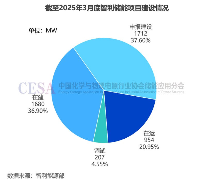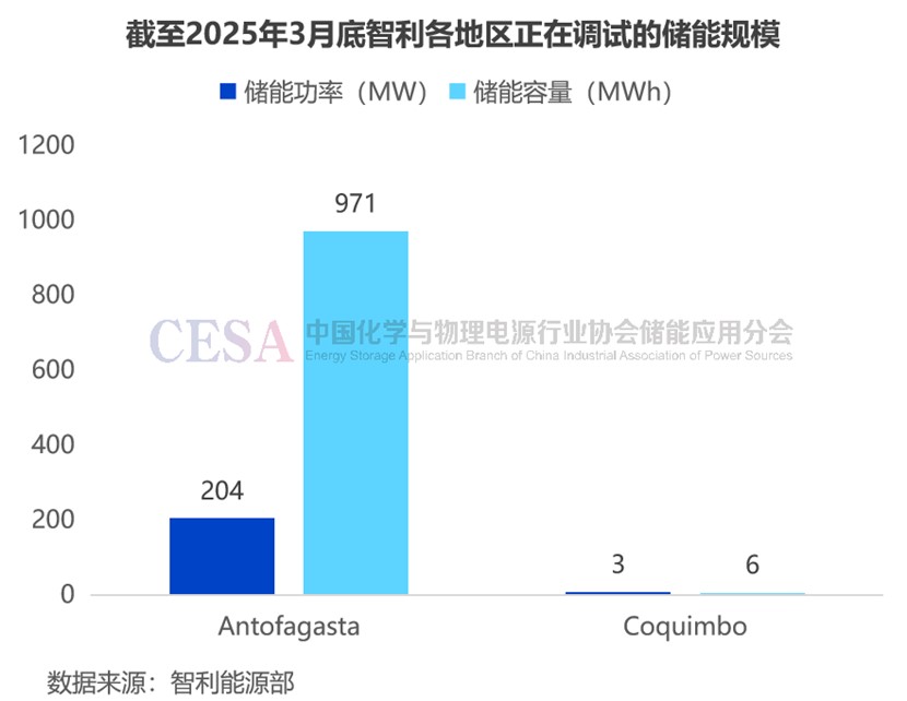 截至2025年3月31日,智利共有4個鋰電池儲能項目正在進行調試,總規(guī)模達207MW/977MWh,其中204MW/971MWh項目位于安托法加斯塔,占比99%。