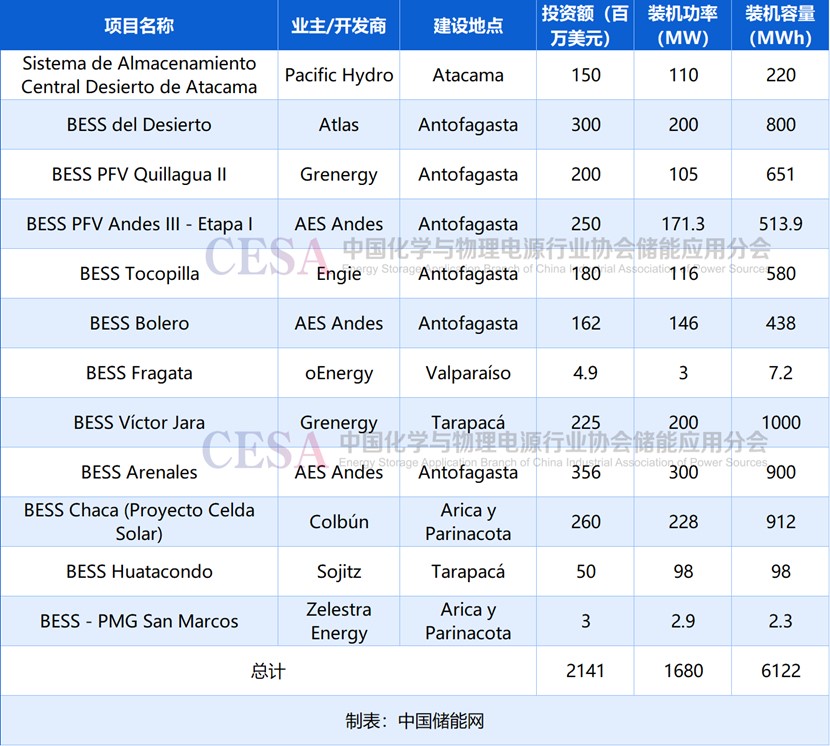智利2050年儲能長期目標為6GW,目前已投運、調試、在建、申報建設儲能項目共4.552GW,已達到2050年目標的76%。