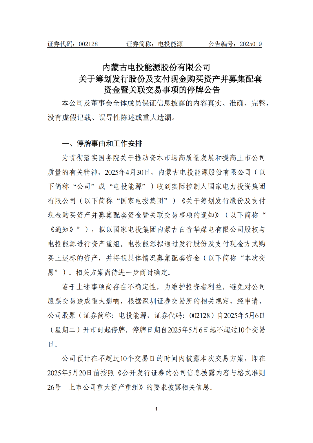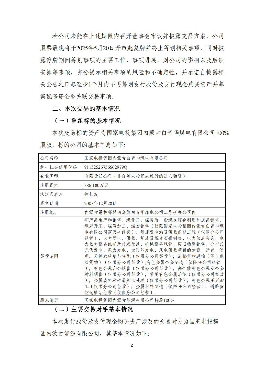 電投能源股票自2025年5月6日(星期二)開市時起停牌,停牌日期自2025年5月6日起不超過10個交易日。