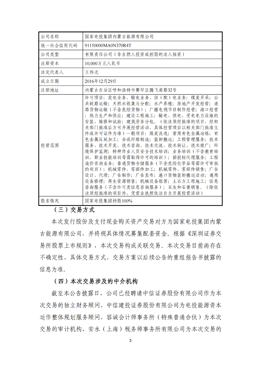 中國儲能網(wǎng)訊:5月5日晚間,國家電投旗下電投能源發(fā)布《關于籌劃發(fā)行股份及支付現(xiàn)金購買資產(chǎn)并募集配套資金暨關聯(lián)交易事項的停牌公告》,公告稱,國家電投擬以國家電投集團內(nèi)蒙古白音華煤電有限公司股權(quán)與電投能源進行資產(chǎn)重組。