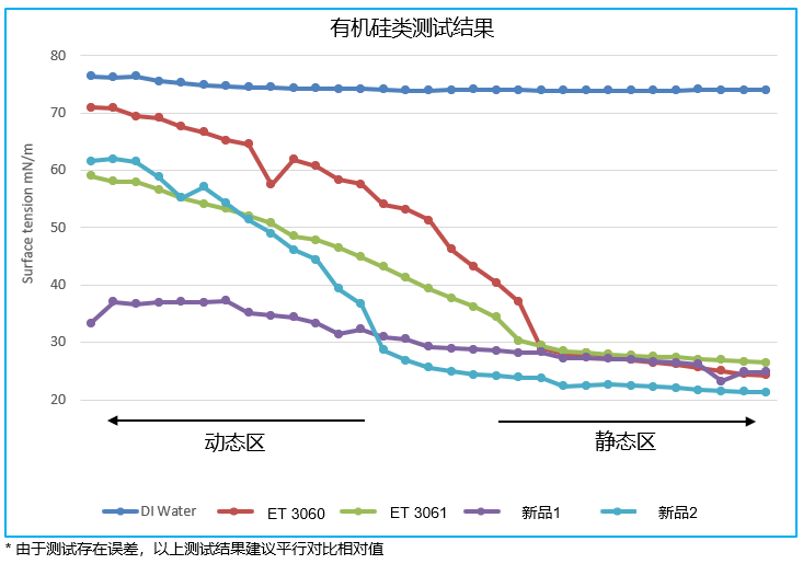除了潤濕分散劑以外,畢克化學(xué)的特種添加劑還包括了降低水性漿料表面張力的表面助劑。這一類助劑主要分為有機硅類和非有機硅類兩種。有機硅潤濕劑具有更強的降低靜態(tài)表面張力能力,可以適用于低極性基材(隔膜或箔材)的涂布過程;而非硅類表面助劑則具有優(yōu)異的降低動態(tài)表面張力能力,適用于漿料快速涂布的要求,并且具有快速自消泡能力。