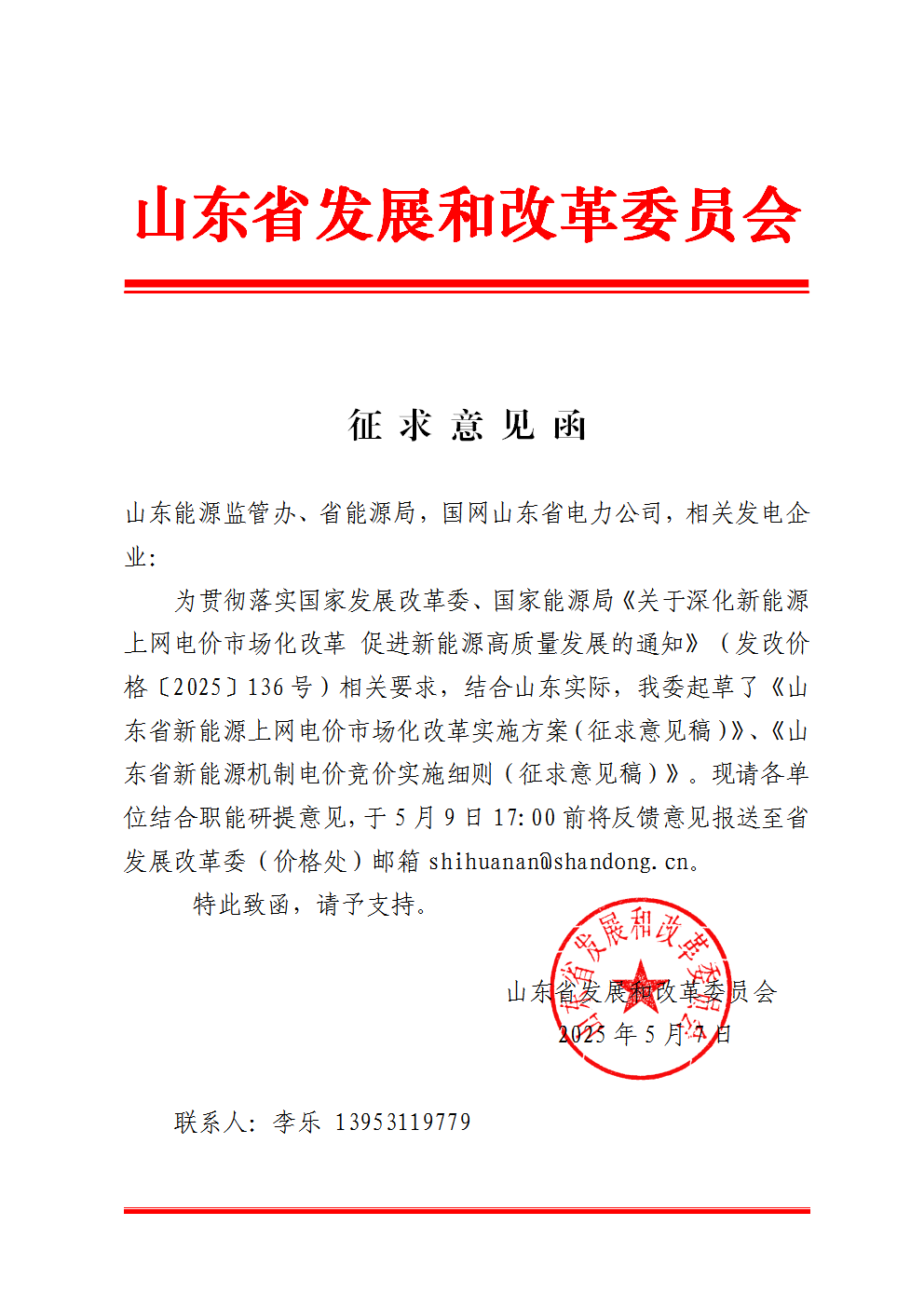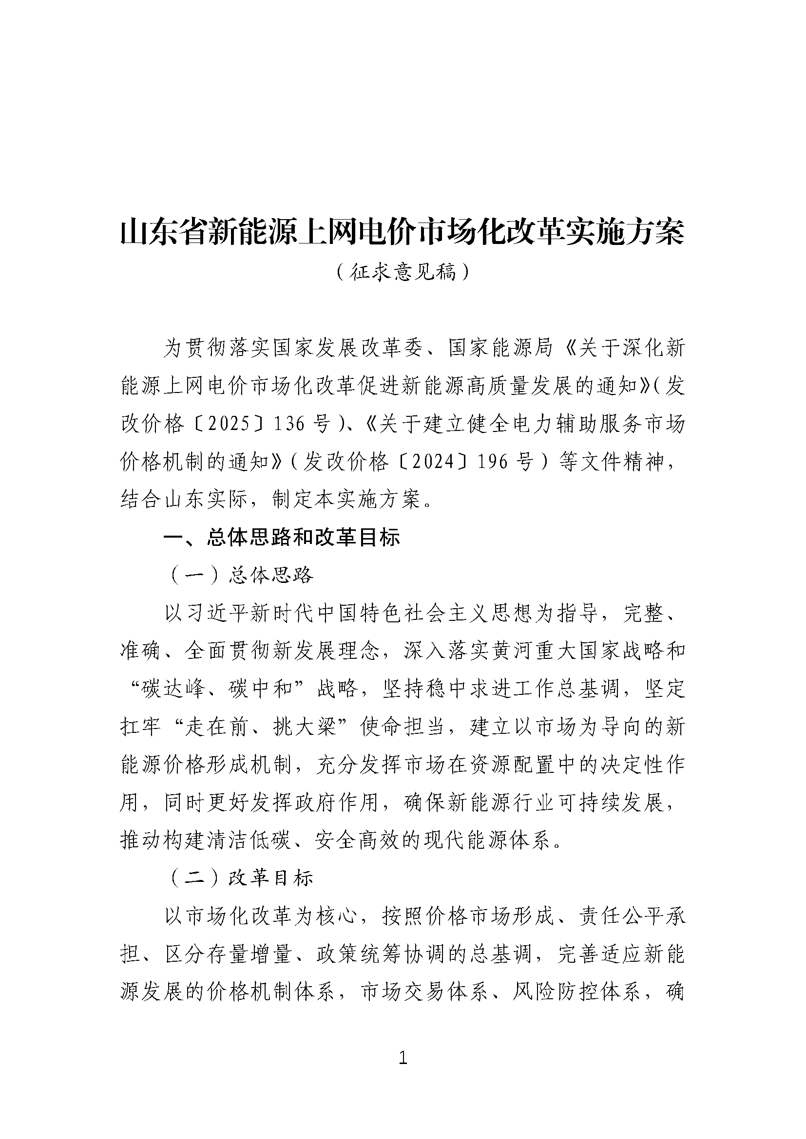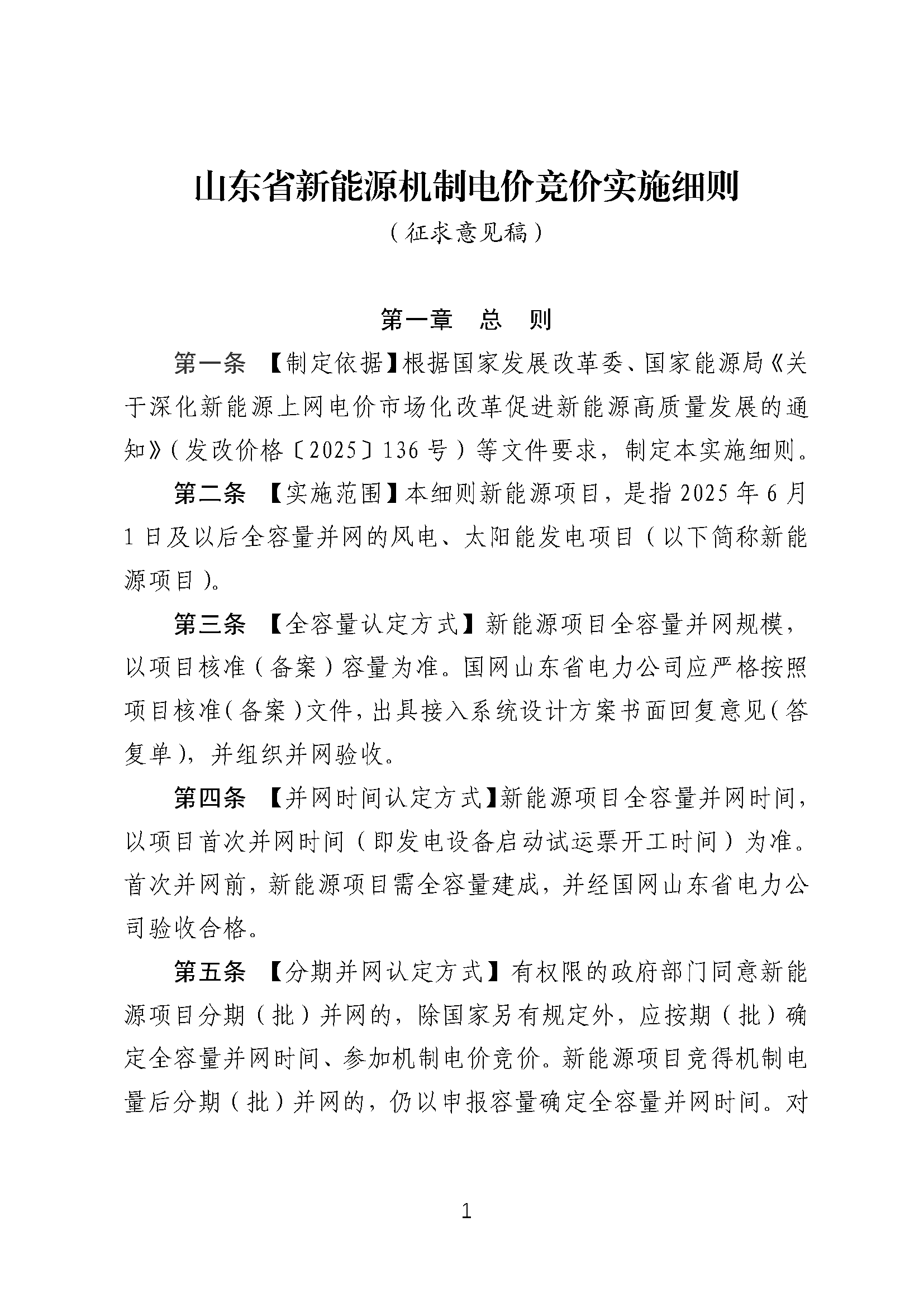 中國(guó)儲(chǔ)能網(wǎng)訊:近日,山東省發(fā)改委正式就《山東省新能源上網(wǎng)電價(jià)市場(chǎng)化改革實(shí)施方案(征求意見稿)》《新能源機(jī)制電價(jià)競(jìng)價(jià)實(shí)施細(xì)則(征求意見稿)》面向能源監(jiān)管機(jī)構(gòu)、電網(wǎng)企業(yè)及發(fā)電企業(yè)公開征求意見。