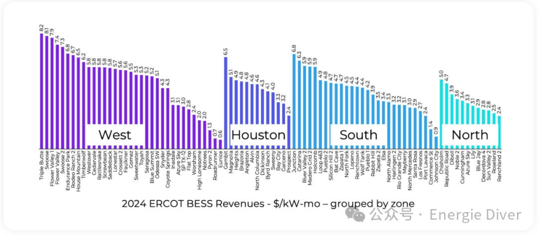 [插入圖片2:按收入排序并按ERCOT負(fù)載區(qū)域分組的89個電池圖表,位于此處,與原文位置相同]