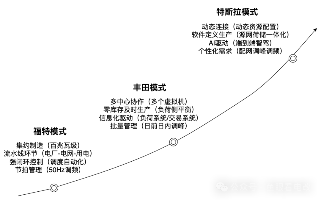 作為工業(yè)2.0的產(chǎn)物,現(xiàn)代電力系統(tǒng)和汽車產(chǎn)業(yè)的底層范式是一脈,即源自福特流水線制造、鐵路的時(shí)間管理、和泰勒的工作管理。