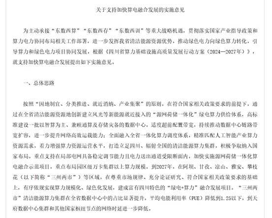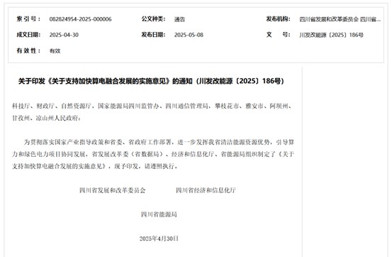 中國儲能網訊:作為全國水電資源稟賦最優(yōu)越的省份,四川正以系統(tǒng)性政策創(chuàng)新為筆,勾勒出一幅“綠電+算力”深度融合的新型能源產業(yè)圖景。5月8日,《關于支持加快算電融合發(fā)展的實施意見》的正式發(fā)布,標志著四川在儲能技術與算力產業(yè)耦合領域邁出里程碑式步伐。