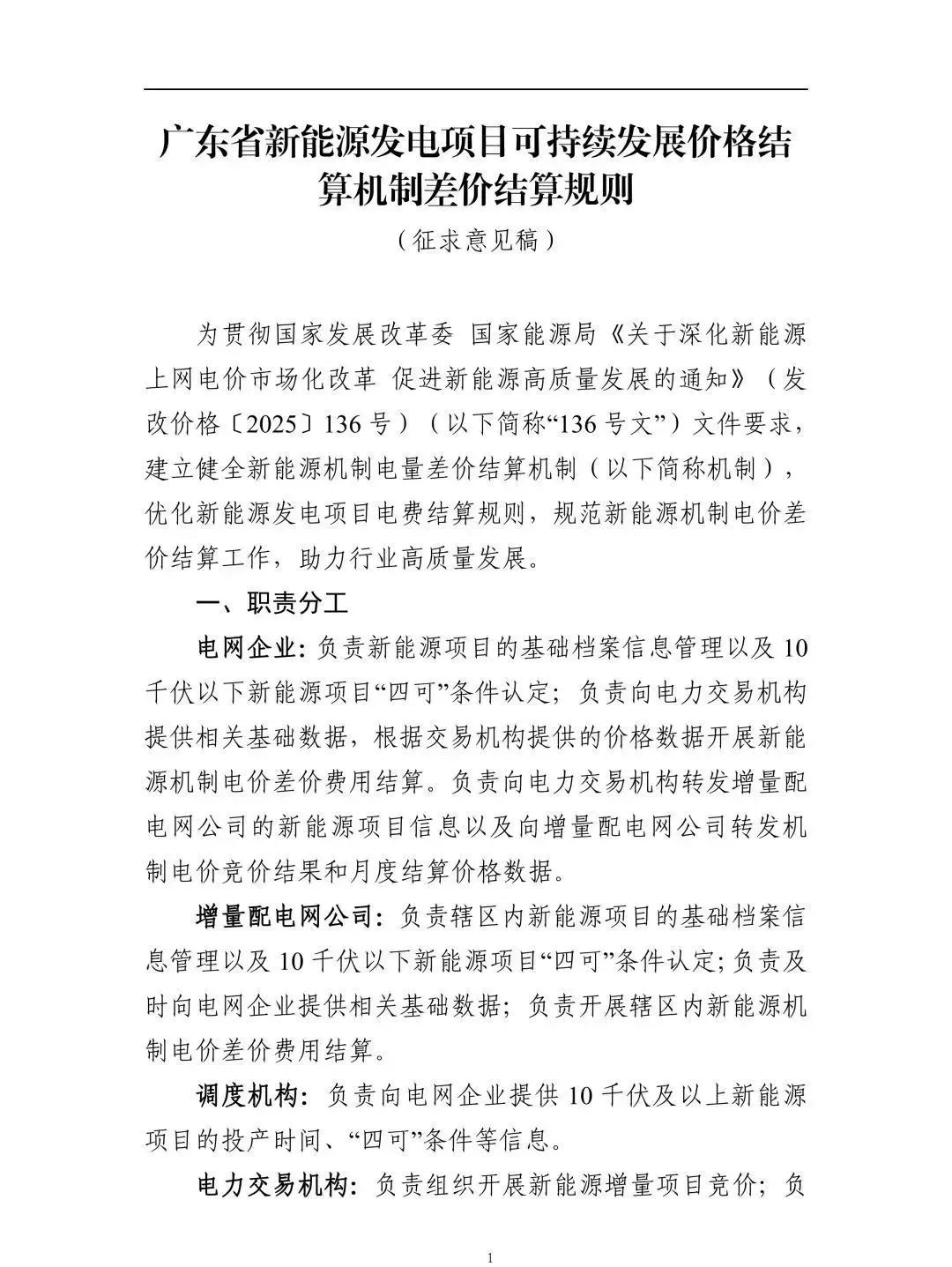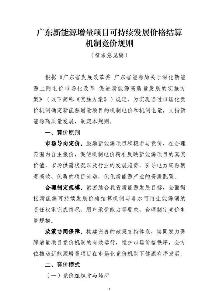 中國儲能網(wǎng)訊:5月12日,廣東省電力交易中心印發(fā)《廣東新能源增量項(xiàng)目可持續(xù)發(fā)展價格結(jié)算機(jī)制競價規(guī)則(征求意見稿)》以及《廣東省新能源發(fā)電項(xiàng)目可持續(xù)發(fā)展價格結(jié)算機(jī)制差價結(jié)算規(guī)則(征求意見稿)》,就廣東省新能源競價細(xì)則給出有關(guān)要求。