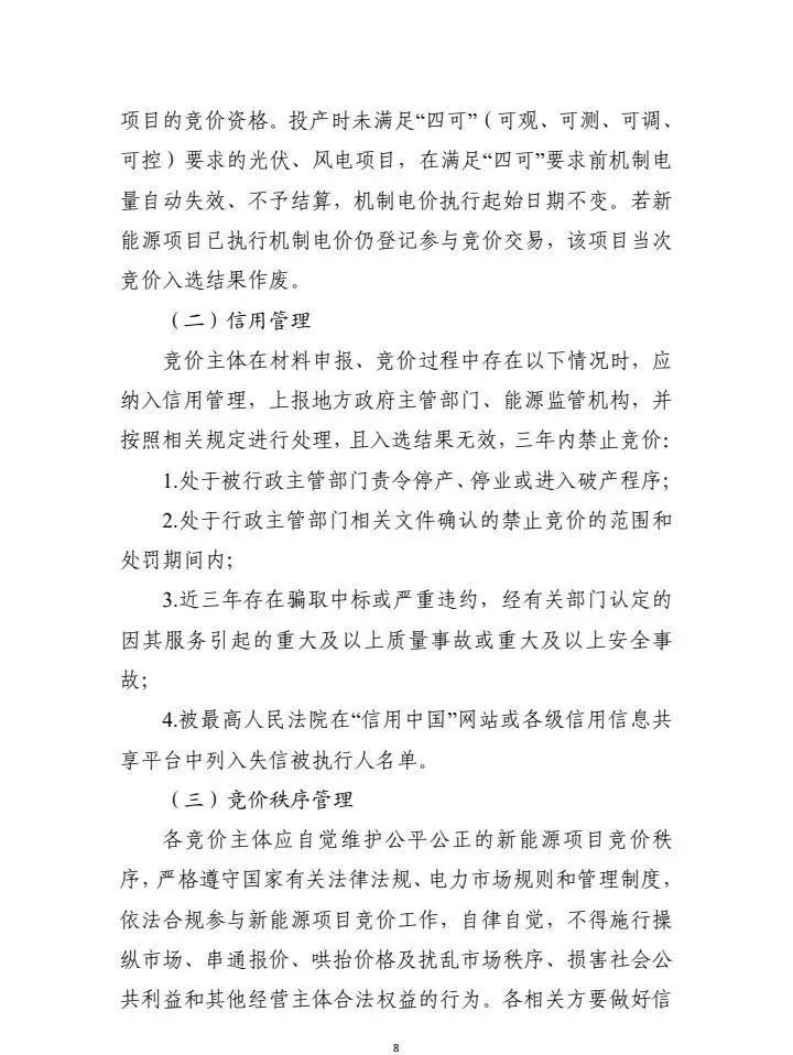 投產(chǎn)時未滿足“四可”(可觀、可測、可調(diào),可控)要求的光伏、風(fēng)電項(xiàng)目,在滿足“四可”要求前機(jī)制電量自動失效、不予結(jié)算,機(jī)制電價執(zhí)行起始日期不變。若新能源項(xiàng)目已執(zhí)行機(jī)制電價仍登記參與競價交易,該項(xiàng)目當(dāng)次競價入選結(jié)果作廢。