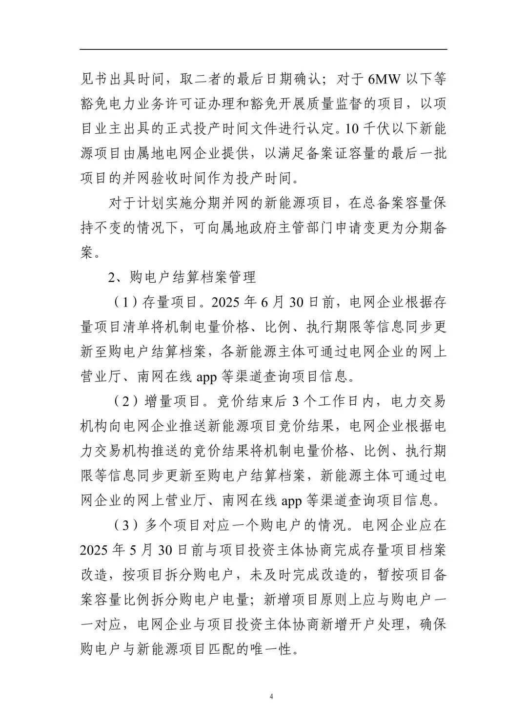 10千伏以下新能源項(xiàng)目由屬地電網(wǎng)企業(yè)提供,以滿足備案證 容量的最后一批項(xiàng)目的并網(wǎng)驗(yàn)收時間作為投產(chǎn)時間。