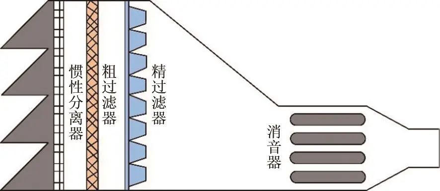 壓縮機(jī)進(jìn)氣系統(tǒng)的核心需求是高效低阻,過(guò)濾效率高可以保證進(jìn)入壓縮機(jī)的空氣的清潔度,避免顆粒物、液滴和油污,對(duì)壓縮機(jī)葉片和流道產(chǎn)生磨損、腐蝕、堵塞和結(jié)垢等,低阻可以提高壓縮機(jī)的運(yùn)行效率。由于CAES系統(tǒng)的運(yùn)行壽命通常在20年以上,對(duì)進(jìn)氣過(guò)濾系統(tǒng)的壽命有較高要求,需要進(jìn)氣過(guò)濾系統(tǒng)在壓降達(dá)到某一特定值或達(dá)到過(guò)濾器的維護(hù)周期內(nèi)有較大的容塵量。