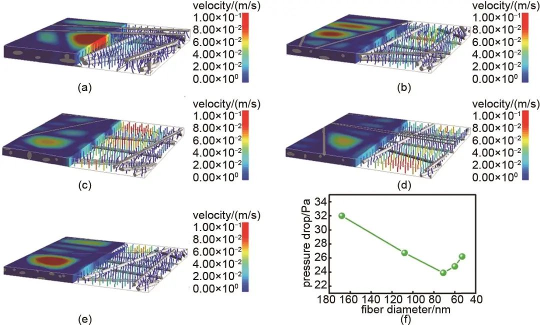 Bian等在經(jīng)典氣溶膠動(dòng)力學(xué)理論和測(cè)量數(shù)據(jù)的基礎(chǔ)上,建立了一個(gè)半經(jīng)驗(yàn)?zāi)P蛠?lái)預(yù)測(cè)PM2.5去除效率,作為纖維直徑、過(guò)濾器厚度、填充密度和面速度的函數(shù)。該模型可用于識(shí)別使PM2.5去除效率最大化的過(guò)濾器參數(shù)的組合。