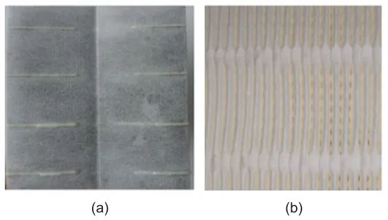 圖11 (a) 膠線(xiàn)式褶形和 (b) 壓花式褶形