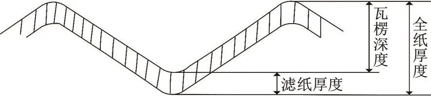 隨著過(guò)濾器厚度和質(zhì)量的增加,過(guò)濾器表面積更大,顆粒滯留時(shí)間更長(zhǎng),其過(guò)濾效率通常會(huì)提高。較長(zhǎng)的纖維紡絲時(shí)間可以通過(guò)在給定的時(shí)間范圍內(nèi)沉積更多的纖維來(lái)產(chǎn)生更厚、更重的過(guò)濾層。濾材厚度可以用千分尺測(cè)量得到,濾材凸起的部分構(gòu)成瓦楞結(jié)構(gòu),瓦楞的存在可以提高濾紙的強(qiáng)度,并且凸起的瓦楞增大了濾紙的過(guò)濾面積,提高了過(guò)濾效率,如圖13所示。