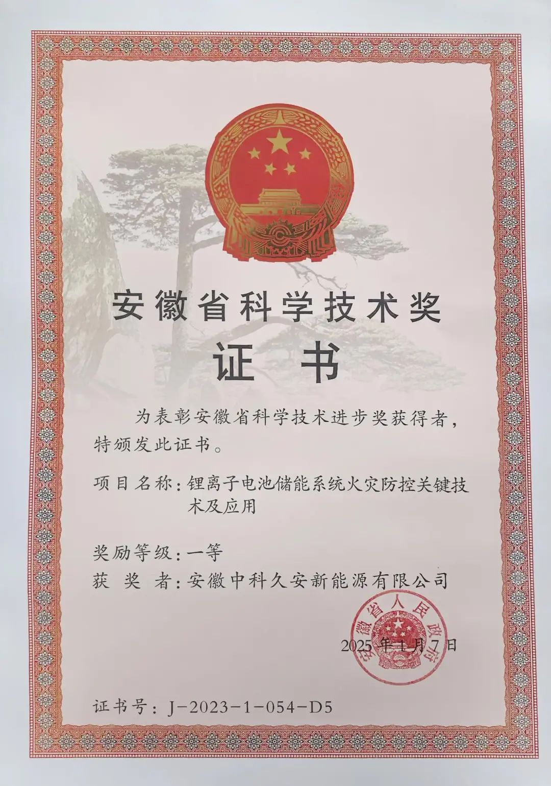 作為國內(nèi)新能源安全領(lǐng)域的領(lǐng)軍企業(yè),中科久安始終堅(jiān)守 “讓能源更高效,讓社會(huì)更安全” 的企業(yè)使命,榮獲多項(xiàng)科技成果轉(zhuǎn)化榮譽(yù),其中,“儲(chǔ)能電站用鋰離子電池艙集中式消防一體化系統(tǒng)ESPS-F-100-ZH”成功入選2024年度安徽省工信廳第二批安徽省首臺(tái)套重大技術(shù)裝備認(rèn)定名單,具備國際先進(jìn)水平,這一成果標(biāo)志著中科久安在新能源安全裝備研發(fā)領(lǐng)域取得重大突破。