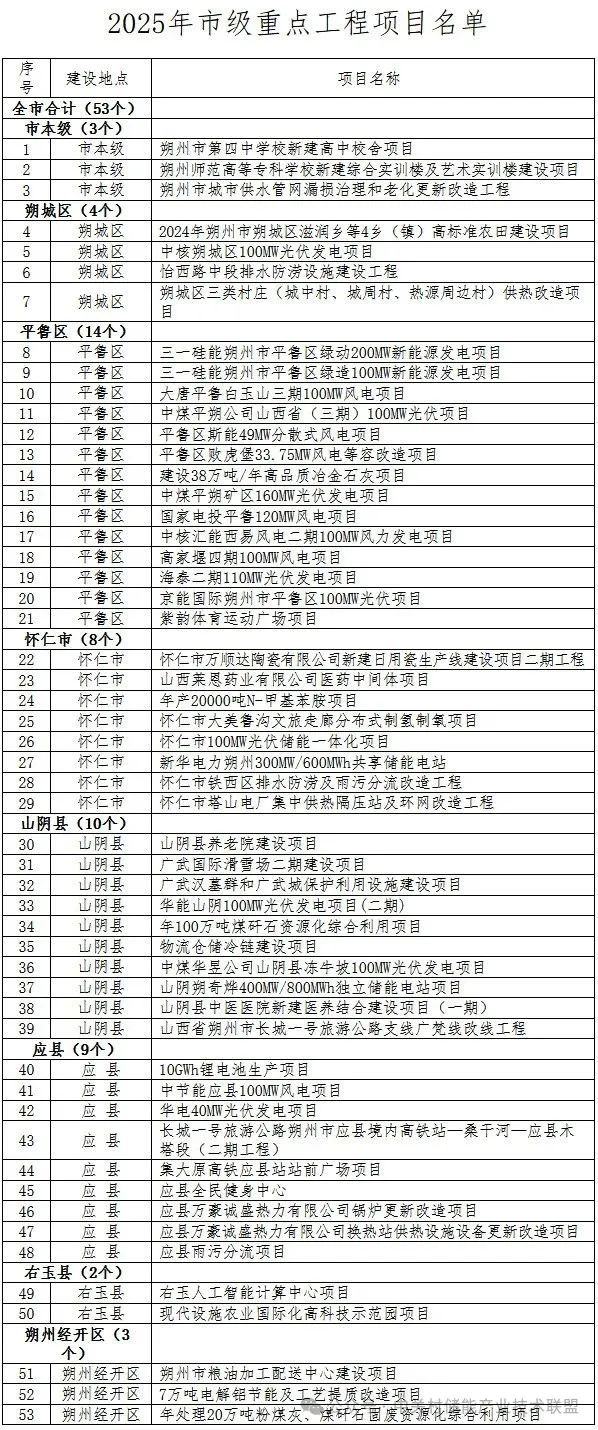 朔州市人民政府辦公室關于印發(fā)2025年市級重點工程項目名單的通知