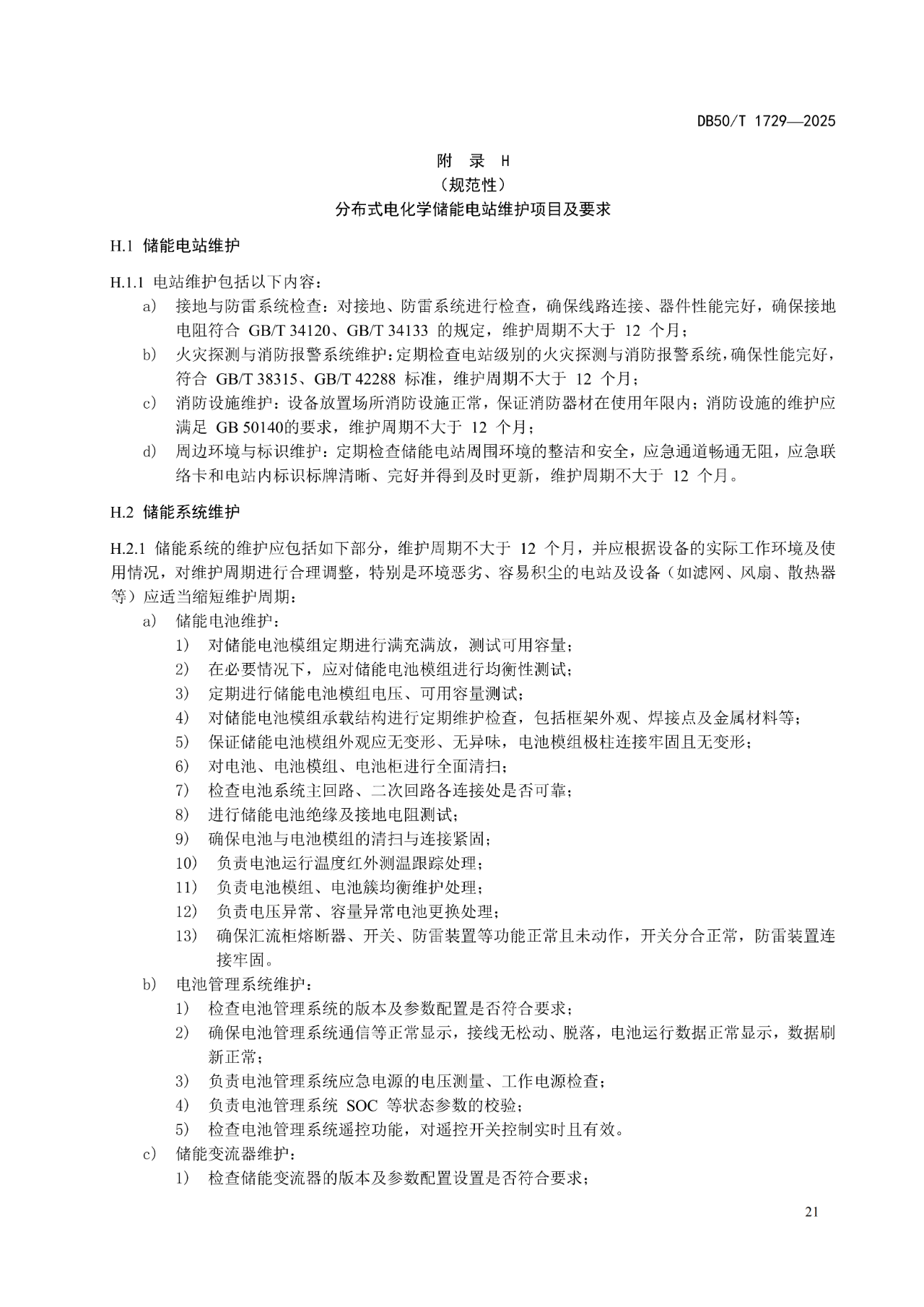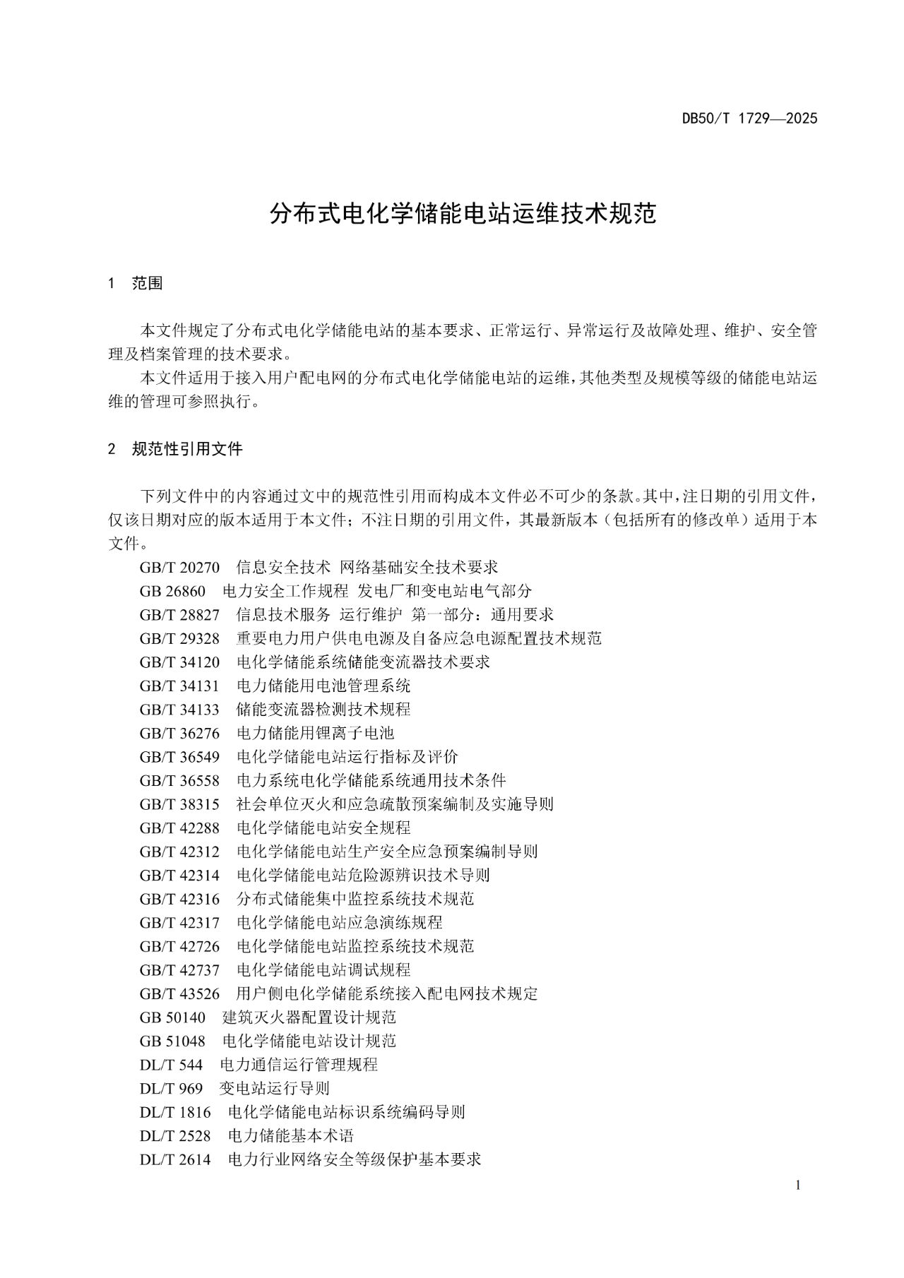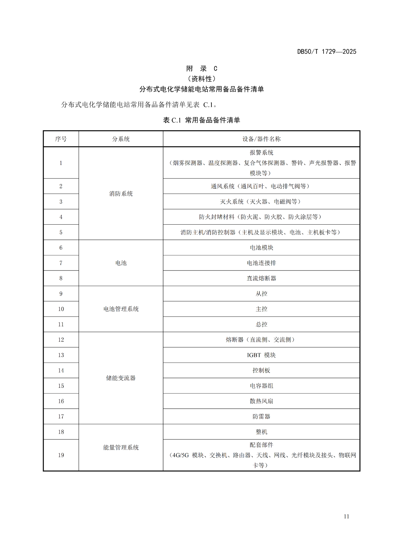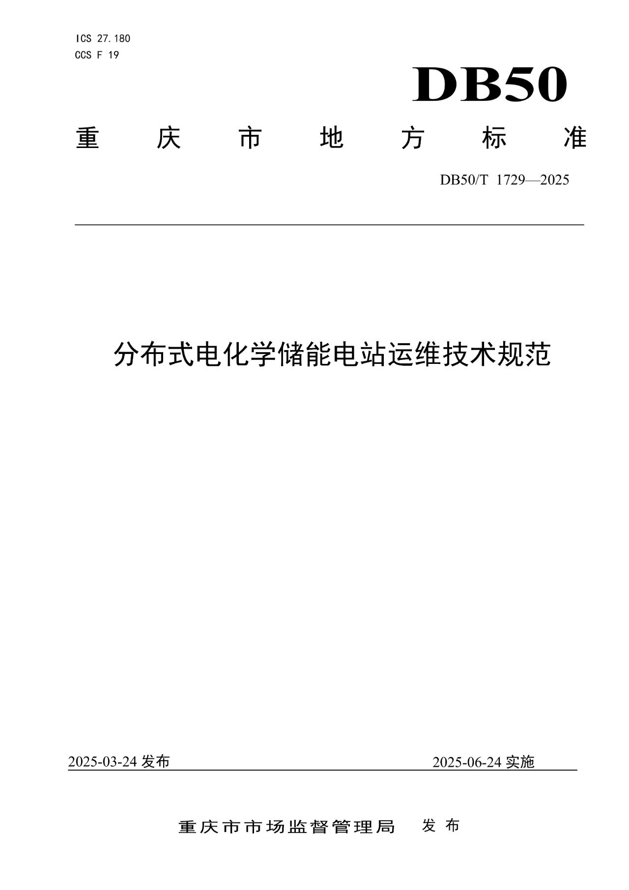 中國儲能網(wǎng)訊:近日,重慶市首個(gè)儲能地方標(biāo)準(zhǔn)——DB50/T 1729—2025《分布式電化學(xué)儲能電站運(yùn)維技術(shù)規(guī)范》正式由重慶市市場監(jiān)督管理局發(fā)布,并將于2025年6月24日起施行。