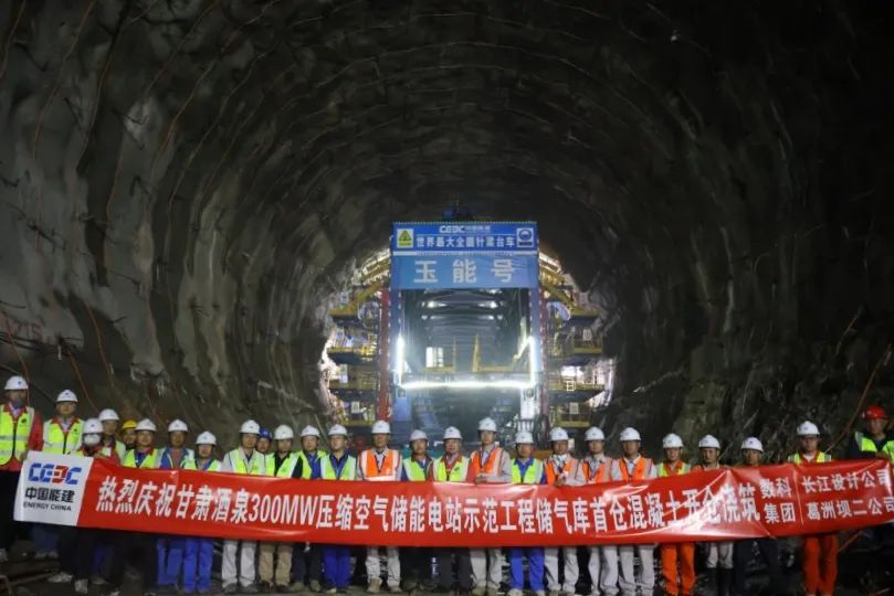 中國儲能網(wǎng)訊:5月16日12時(shí)56分,中國能建研發(fā)投資建設(shè)的“世界首臺(套)甘肅酒泉玉門300MW人工硐室型壓氣儲能項(xiàng)目”地下工程儲氣庫第一倉混凝土開始澆筑,標(biāo)志著該項(xiàng)目地下工程土石方開挖順利結(jié)束,砼澆筑全面開始,實(shí)現(xiàn)硐室開挖向密封工程施工的重大轉(zhuǎn)序。