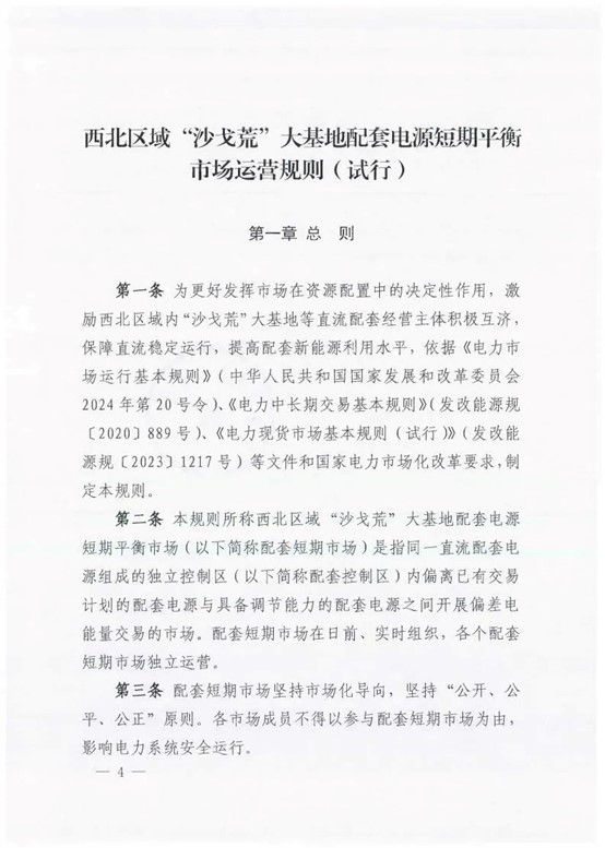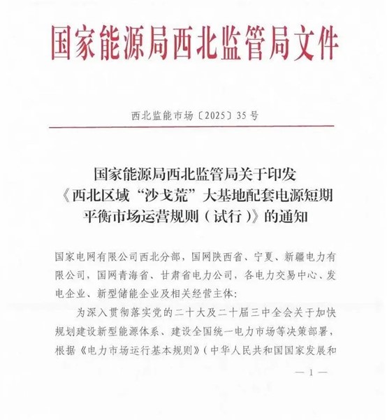 中國(guó)儲(chǔ)能網(wǎng)訊:在西北廣袤的“沙戈荒”地帶,一場(chǎng)重塑能源格局的變革正悄然展開(kāi)。隨著國(guó)家能源局西北監(jiān)管局5月15日正式發(fā)布《西北區(qū)域“沙戈荒”大基地配套電源短期平衡市場(chǎng)運(yùn)營(yíng)規(guī)則(試行)》,我國(guó)儲(chǔ)能產(chǎn)業(yè)發(fā)展迎來(lái)里程碑式的政策突破。這項(xiàng)創(chuàng)新機(jī)制不僅為沙漠戈壁中的新能源基地注入市場(chǎng)活力,更以其獨(dú)特的制度設(shè)計(jì)為全球能源轉(zhuǎn)型提供了可借鑒的“中國(guó)方案”。