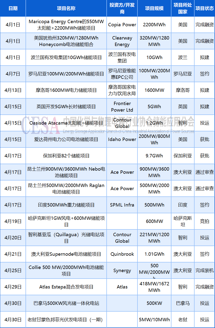 中國儲能網訊:2025年4月,CESA儲能應用分會產業(yè)數據庫追蹤到18起海外儲能項目建設動態(tài)事件,總規(guī)模超43.97GWh,涉及Contour Global、Ace Power、Ace Power、Frontier Power Ltd、SPML Infra、Copia Power、Clearway Energy、摩洛哥國家電力與飲用水局、波蘭國有發(fā)電集團、Atlas等全球能源投資方/開發(fā)商,建設地點位于保加利亞、智利、澳大利亞、英國、印度、美國、摩洛哥、波蘭、智利等國家。