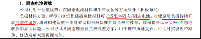 開(kāi)頭曾經(jīng)提到了,雖然目前固態(tài)電解質(zhì)的技術(shù)路線屬于“三分天下”,但負(fù)極材料的硅基負(fù)極路線短期是相對(duì)清晰的。當(dāng)然市場(chǎng)普遍認(rèn)為固態(tài)電池的負(fù)極終極形態(tài)是鋰金屬,年報(bào)顯示璞泰來(lái)也在積極研發(fā)鋰金屬負(fù)極。