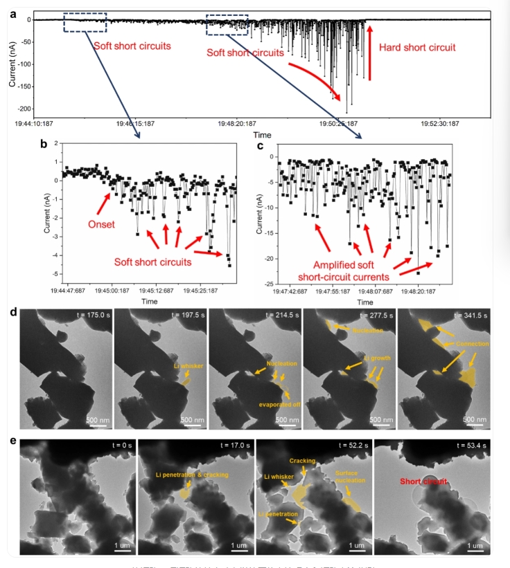 △軟短路-硬短路的轉變動力學的原位電鏡觀察和短路電流監(jiān)測