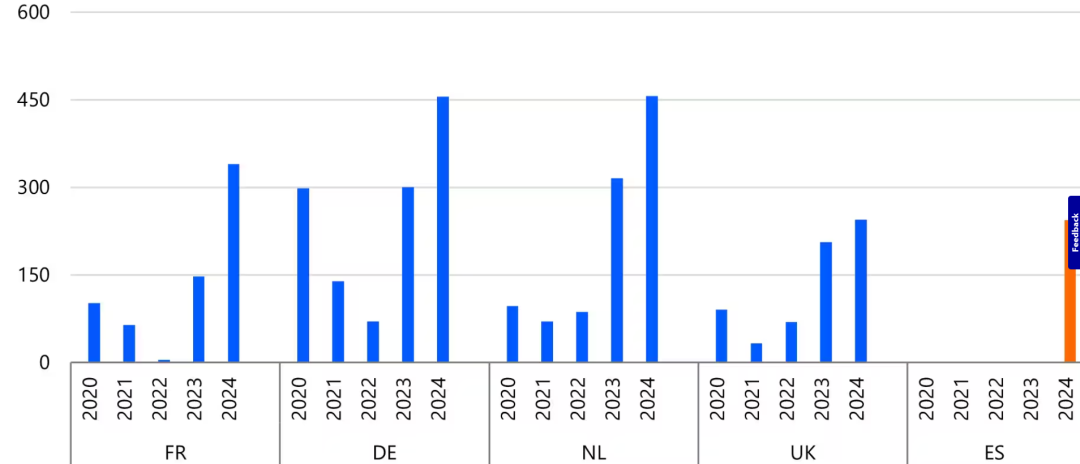 數(shù)據(jù)來源:歐盟能源存儲清單委員會、RaboResearch 2025
