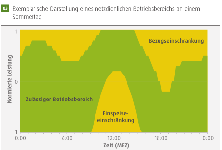 相較于電網(wǎng)中性標(biāo)準(zhǔn),電網(wǎng)友好型儲能在運營中的限制條件顯著更高(參見圖3示例)。為設(shè)置必要激勵并保障運營商經(jīng)濟可行性,運營商將獲得服務(wù)報酬。立法機構(gòu)通過《能源經(jīng)濟法》第11a條開放了儲能設(shè)施招標(biāo)機制,允許將相關(guān)成本納入監(jiān)管認可范圍。其前提是:儲能設(shè)施對于電網(wǎng)運營商高效履行"運營安全、可靠且高效能供電網(wǎng)絡(luò)"的法定義務(wù)具有必要性。