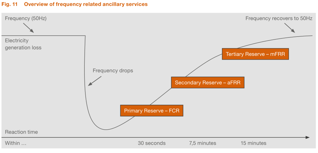 自動(dòng)頻率恢復(fù)儲(chǔ)備(aFRR)-分鐘級(jí)恢復(fù)標(biāo)稱頻率(二次調(diào)頻),參與每日拍賣。穩(wěn)定收益流,拍賣競(jìng)價(jià)模式。